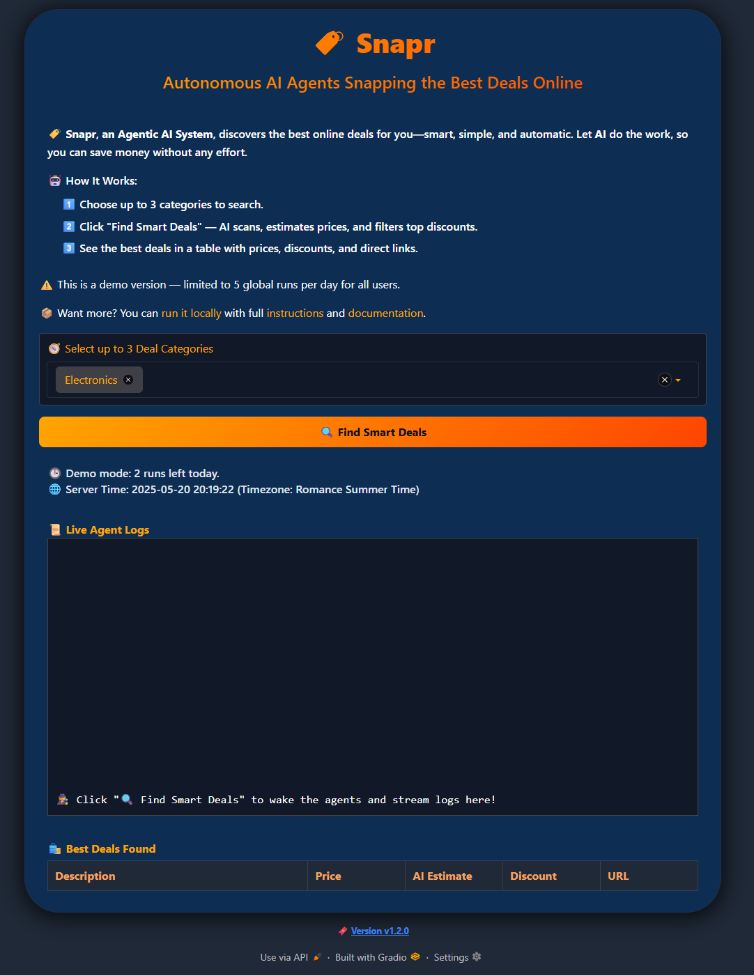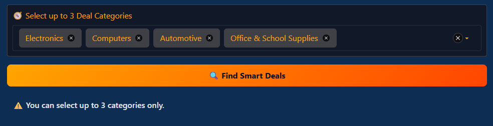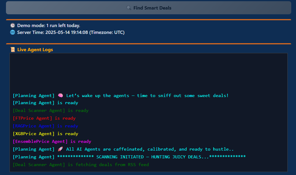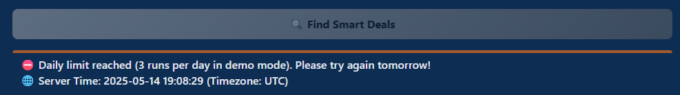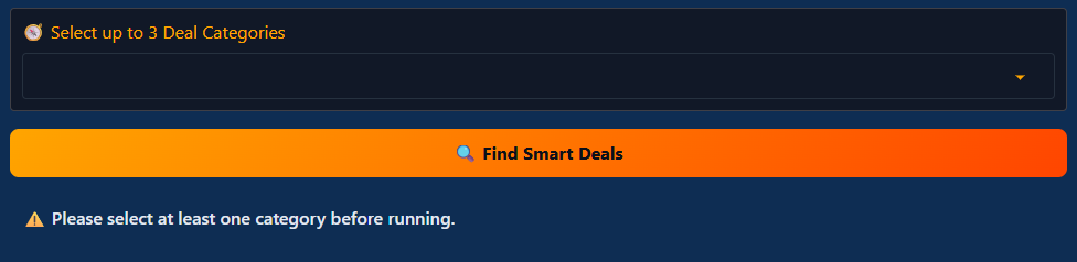 - βFind Smart Dealsβ: triggers the full deal pipeline.